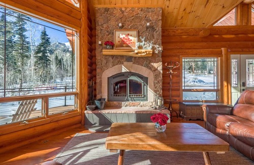 This GORGEOUS log cabin is surrounded by aspen and pine trees in a tapestry of small creeks. Photos faintly capture the scene, but the effect of seclusion and wilderness is multiplied by the soothing sound of rushing creeks that flow year round.