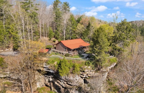 Clifftop Haven is the perfect choice for those looking for luxury and complete seclusion in a landscaped garden setting. This single level Cabin sits on a clifftop with a magnificent mountain top view in all directions. Enjoy peace and serenity in its very private setting. This is truly the perfect get away from it all while basking in luxury. This 1600 sq ft house sleeps 6 people in 3-BR , 2-BA and comes with all modern amenities. The Master bedroom has a king size bed en suite bathroom with shower stall, his and hers sinks, and jacuzzi tub. The 2nd bedroom has a queen size bed. The 3rd bedroom has 2 twins and shares a full bathroom with tub/shower combo. Cabin features High ceilings throughout, Amish furniture and beautiful professional landscaping and garden. Features an outdoor hot tub with seating for 4-5, 50'' flat screen smart TV hard wired into Newly installed (6-2025) fiber optic Wi-Fi with fiber optic cable TV, sound bar, dishwasher, microwave, coffee maker, washer/dryer, central heat/AC, gas fireplace, dining table and breakfast table, bar stool seating, large covered wrap around deck with bench swings and sheltered outdoor dining table, fire pit and propane gas grill.