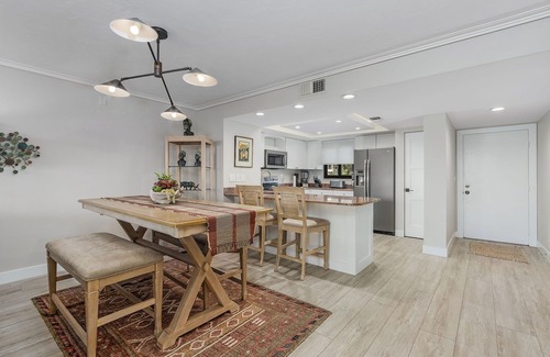 Located on the peninsula of Punta Rassa, away from the hustle & bustle, but close to everything, your private, impeccably appointed seasonal getaway awaits you. Newly remodeled and refurbished, virtually everything in this luxury unit is new, making it one of the nicest units available in the desirable Punta Rassa Condominium complex. Enjoy views of San Carlos Bay, Sanibel Island, and the Causeway. Located in Building 1 of these waterfront condos, you’ll enjoy views of palm trees and the water - day and night, as well as enjoying the closest access to the pool, hot tub, and all the other onsite amenities. Amenities include lush landscaping, a private community fishing pier (with pier license), tennis courts, shuffle board courts, playground, gazebo with grills and sitting/dining area and restrooms. (Rental boats are available at the adjacent Sanibel Harbor Resort.) The entire property is meticulously maintained, with beautiful landscaping and plenty of walking areas to enjoy.