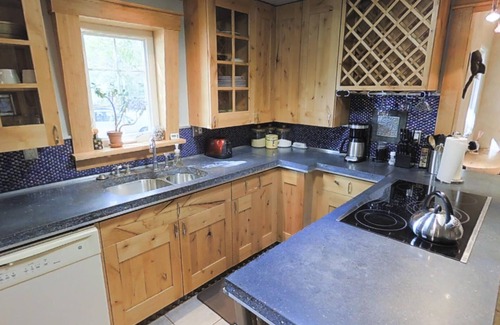 The Peach House is an extensively and beautifully remodeled 2-bedroom 2-bath home on Bozeman's north side, close to a 2-block city park, and a short walk to downtown Main Street (5 blocks away) as is also nearby the Fairgrounds where the summer and winter Farmer's Markets are held. Now with 400 Meg internet service and 220 volt electric vehicle charging port!