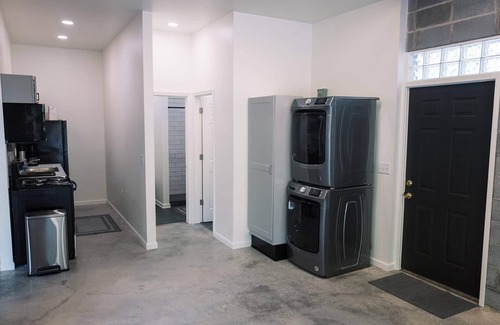 Outside, savor the delights of outdoor cooking with a gas grill, unwind in the provided hammock to the soothing sounds of the waterfall (weather permitting), and gather around the fire pit for cozy evenings beneath the star-studded sky. Back inside, the shared facilities include a large open recreational room that is the perfect space for gathering with family and friends. Additionally, this space includes a full bathroom featuring a walk-in shower, a convenient half bath, and laundry facilities.