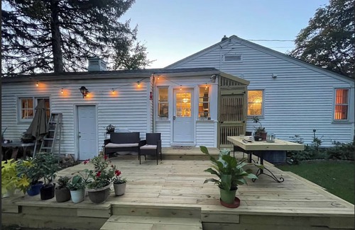 Your home away from home in Poughkeepsie with 2 lovely bedrooms featuring 2 queen beds. This very charming house offers a cozy atmosphere with modern amenities like WiFi, central air, a fitness area with a Peleton bike, and washer and dryer. Enjoy the convenience of 2 bathrooms equipped with a bathtub and shower, and a lovely backyard with a comfortable deck. Experience the magic of Poughkeepsie at our lovely house.