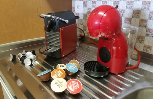 The kitchen is equipped with an oven, a refrigerator, and a dishwasher, as well as a coffee maker, a microwave, and a toaster. Other amenities include bed sheets, an ironing board, and heating.
