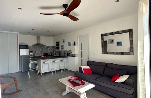 Located, 5 minutes walk from the Rupione beach and ten minutes from the silver beach we welcome you in a new F2 of 50M2.