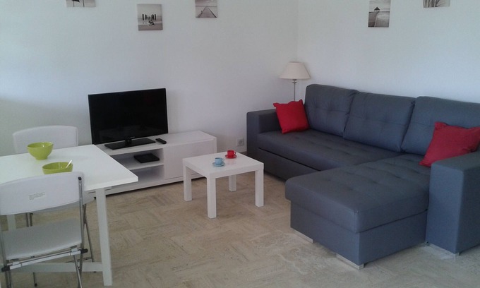Apartment located in a small residence at 100 m from the beach. All shops nearby. It is air conditioned, nice and bright and can comfortably accommodate 5 people. Terrace with awning and furniture for meal.