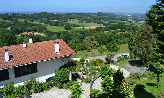 F4 of charm 6/8 pers view sea/mountains area of 3 hectares 4 km d beaches | Cottage in Urrugne
