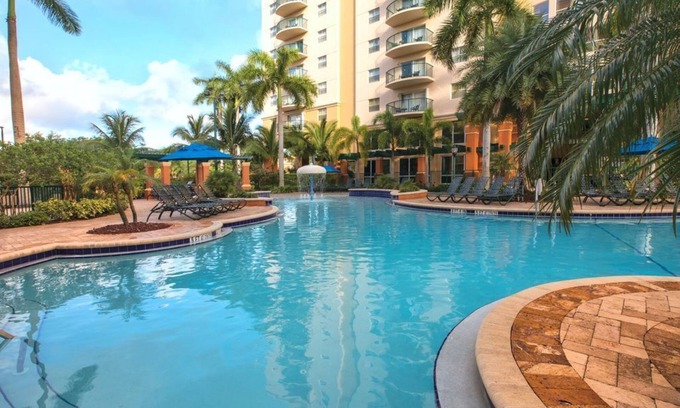 Some of the best vacation moments happen when you don’t stick to the plan. Wyndham Palm-Aire is a tropical haven, adjacent to the links at Palm-Aire Country Club. It’s jam-packed with a wide array of amenities the whole family will enjoy. So whatever you’re planning to do on vacation — even the unplanned, unexpected things — this resort is ready to accommodate it all. Show off your competitive side with corn-hole, bocceball, or miniature golf for the whole family. Even more competitive? Try your skills at a kickball, basketball, or volleyball tournament. Lounge by the resort pool, enjoy some live music, or give your taste buds a treat at the wine and cheese or ice cream socials. Get creative with wine glass painting, tie-dye, or build-a-buddy. Plus, there's plenty of fun outside of the resort. Raise the stakes at Isle Casino. See if you can get a strike at AMF Bowling, or bask in the Florida sun on the beach.