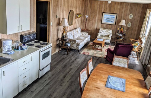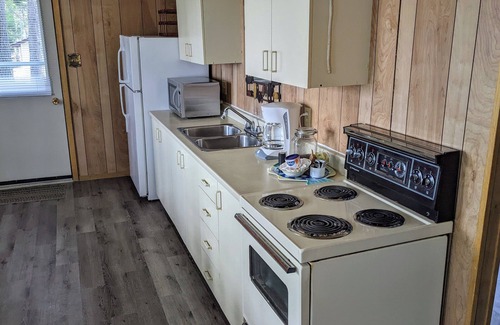 The cottage is open concept, very bright, clean and boasts all amenities such as a fridge, stove, microwave, toaster, kettle, coffee pot and plenty of dishes and cutlery.