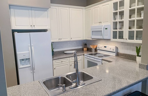 KITCHEN: Nicely appointed kitchen with coffee bar, stove/range, microwave, dishwasher, toaster, crockpot & blender. Kitchen fully stocked with kitchen staples, spices, and condiments.