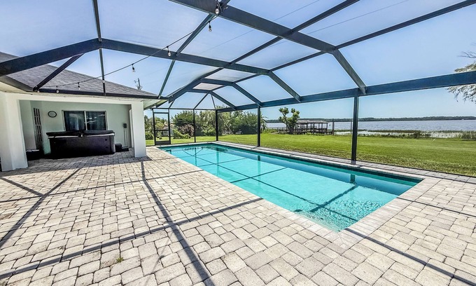 Fabulous lakefront villa 4 bedrooms with pool, spa, fitness room, ping-pong . | Villa in Astatula