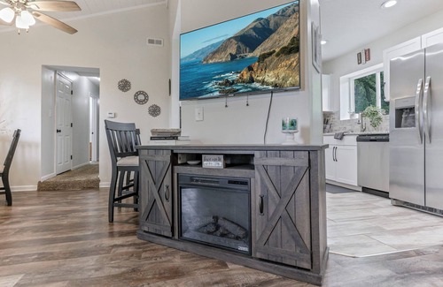 Nestled on an acre of land, the yard boasts a delightful patio area perfect for outdoor gatherings, complete with a large hot tub. Throughout your stay, you're likely to spot deer roaming the yard. Additionally, the property is conveniently located just a short stroll away from Fairfield beach and the water.