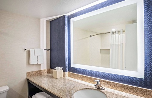 Recreational amenities at the hotel include an indoor pool and a 24-hour fitness center.