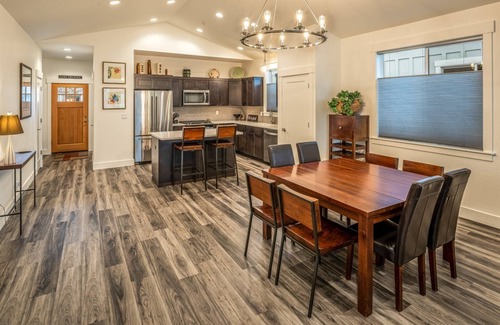 Our vacation rental features all the modern amenities you could ask for, including warm radiant in-floor heat and a mini-split for cooling. You'll love the stunning quartz countertops in the kitchen and all the bathrooms. Luxury vinyl plank flooring throughout the house adds to its elegance and durability. The fenced backyard provides a perfect spot to relax and unwind in privacy.