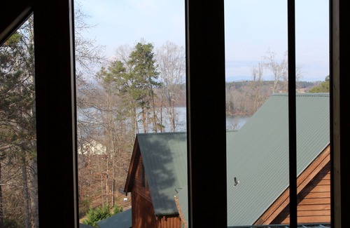 Cabin getaway with outdoor firepit and indoor gas fireplace. Beautiful wood-lined cabin with wonderful views at all levels facing towards Lake Keowee, and the surrounding mountains. 20 minutes from Clemson campus. Three floors -- ground floor game room and TV center; main floor kitchen, deck, fireplace and 2 bedrooms; upper loft main bedroom and day bed (sleeps 2). Deck is screened in, with tables and chairs for dining or just hanging out. Washer and dryer available for use. Cabin located on very quiet street, five minutes from main shopping area. Lake access is minutes away at multiple locations. Book your cozy getaway now!