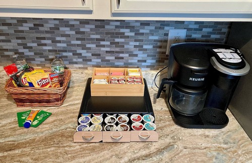 On the first floor, you will find a spacious bedroom with a queen size mattress as well as a small sofa that provides a cozy spot to read a book and look out to the backyard. Adjacent, will find a private bathroom with a shower. On this level you will also find a full-size washer and dryer that will easily accommodate the entire family.