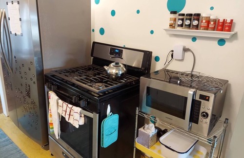Note: This home does not have central heating or cooling, however you will find we have made it quite comfortable with supplemental space heaters and window/portable AC, depending on the season. New in 2025: Window a/c units added for warm weather season in both upstairs bedrooms!