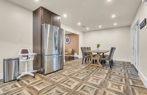 The freshly updated kitchen includes state-of-the-art stainless steel appliances, making meal prep easy. You can bring the food right over to the large table with enough seating for six. A high chair is available for your use as well. You can also enjoy your meals on the patio and make use of the BBQ grill, available seasonally.