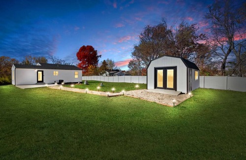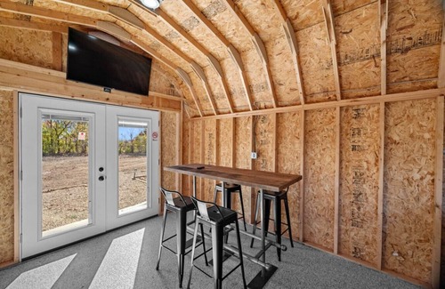 Nestled on 1.2 acres, our Chalet offers beautiful surroundings and ample outdoor space to unwind. After a day of exploring the St. Charles Historic District or enjoying nearby attractions like Old Town St. Charles, unwind in our detached lounge area that includes a luxurious hot tub. Relax, grab a drink from the bar, and catch up on your favorite shows on the TV.