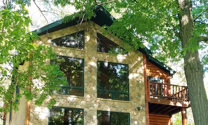 Our home is a newly built cabin with modern conveniences throughout the interior, from solid hardwood cypress flooring, knotty pine ceilings, and reproduction antler lighting fixtures to granite surfaces. We designed our home with family entertainment in mind. On the lakeside you can enjoy the panoramic views of the water while relaxing on the patio. This home is situated on 50' of Green Lake frontage and an expansive back yard. During the summer relax and enjoy the water ~ swimming further out in bay opening, skiing, boating and fishing. We recommend a Pontoon boat because the water is shallow in front of the house. Feel free to tie your boat off to the pier during your stay. There are many wonderful things to do during the summer this area of Big Green Lake offers the best swimming areas around including: Norwegian Bay and County A park (just minutes from the home).