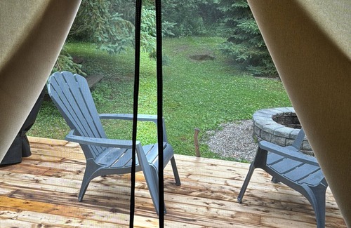 Get away from it all when you stay under the stars in rural Port Colborne. Our tent site was built in 2024 on our 11 acre woodland property. We have combined everything you love about camping with the comforts of glamping. The site is very private and includes a gorgeous queen bedroom, large fire pit, BBQ, solar lights, phone charging station, and a clean modern outhouse with handwash station. Just a 5 min walk away from public beach access to Lake Erie (Cedar Bay), plus great biking nearby.