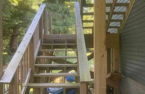 The roaring Falls will relax you for morning coffee or a midday nap. The upstairs deck has just what you need for a little getaway. It includes One bedroom, one bathroom and a kitchenette. Outdoor dining, free wifi, walking distance to the park, the country store/gas station and hot deli. 7 miles from Louisa Ky!