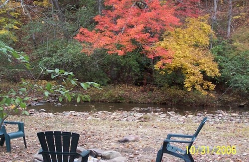 The driveway passes a 1860's water-powered, gristmill. Secluded on 70 acres bordering the National Forest, the 3 bedroom cabin overlooks a rocky mountain stream, is decorated with original artwork and tasteful comfort, offers gorgeous views from every window, and a swing on the back porch looking over the creek. Fish the designated trout stream. Hiking
