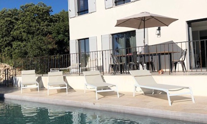 Surrounded by oaks and pines with a breathtaking view of the Vaucluse (the sunsets are spectacular) this beautiful new house of 185m² welcomes you in a quiet and relaxing place.