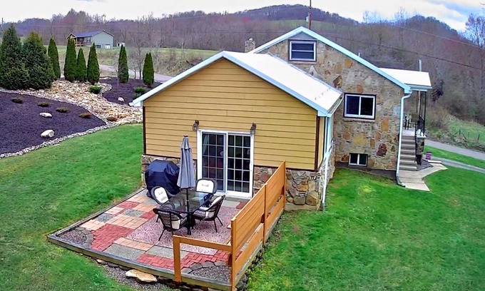 Stone Garden Cottage is a 3 bedroom, 2 bathroom single family residence located outside Confluence along the White’s Creek area. This property puts guests in the heart of the Laurel Highlands and makes an exceptional family and pet friendly getaway that is sure to please. Along with the 3 bedroom and 2 bathroom accommodations this home boasts and exceptional den with gas/propane fireplace with quick access to the brick patio. Guests will be able to take advantage of the home’s privacy as it sits on a quiet country road. With amazing yard space and a fire pit, you’ll spend more time outdoors than indoors! Indoors you’ll have plenty of room to cook in the kitchen and dine in the dining room. With lots of windows, you can enjoy the natural light and view of the amazing yard and local pasture land.