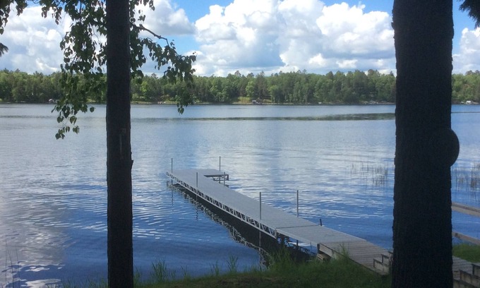 Three bedroom home nestled in mature white pine and Norway trees on Third Crow Wing Lake. Excellent fishing from dock as well as access to Second Crow Wing Lake and Fourth Crow Wing Lakes via boat. Beautiful scenery and new dock. Large smart tv in living room with internet. Queen beds in both bedrooms on main floor. Two full size beds in lower level bedroom. Large living room with two queen sized couches/fold out beds. House sleeps 1-7 people. There is one full bathroom upstairs and a bathroom with a shower downstairs. The washer and dryer are located in the downstairs bathroom. (see photo) Newer stove/oven and refrigerator, microwave, weber charcoal grill, kitchen utensils, basic seasoning provided, coffee also provided etc.