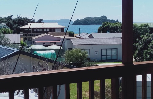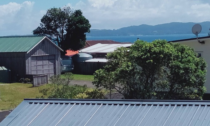 Two storey family holiday bach. External stairs - 2 bedrooms upstairs and 2 downstairs which are connected off the garage.Full kitchen , bathroom , laundry and lounge upstairs and a lounge/tv room , 2 smaller bedrooms, chest freezer and spare fridge downstairs. Upstairs deck views with Bbq and a 1 minute walk to the beach and a short distance to launch the boat. Paddle board available for use. Easy to relax or enjoy our walks and the beautiful bay.