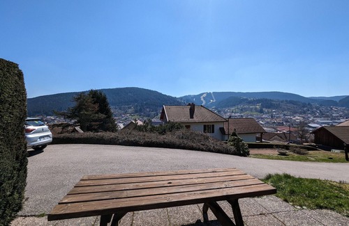 Gîte in a wooden chalet at an altitude of 700 meters, overlooking the town of Gérardmer: a summer and winter resort with its lake, mountain hikes, and La Mauselaine ski resort. Groceries and a doctor are 1 km away. Independent gîte of 55 m² in a chalet. Private entrance. On the ground floor: Living room opening onto the equipped kitchen and living room with fireplace and TV. 1 bedroom with 1 double bed and 1 baby bed. Bathroom with shower. WC. On the 1st floor: 1 bedroom with 1 double bed, mezzanine area (1 single bed), WC. Terrace. Gardens. 2 swings, sandpit, table tennis, barbecue. Electric heating, charges not included (on meter reading according to consumption, beyond the 8 kW included per day).