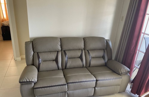 Welcome to our family cozy 2 bedroom apt. home away from home! A harmonious blend of comfort style and Caribbean charm nestled in the heart of one of Jamaica's most iconic coastal towns. Our residence promises an unforgettable island getaway. You will experience great comfort in our plush bedrooms. Each with comes with its own air condition unit, full closet space, side tables & lamps. The master bedroom has, TV and a 7 draw dresser with mirror. You can relax on our comfortable patio & enjoy the cool Jamaican breeze. Our open concept living and dining provides comfortable sofa, counter stools and dining table. WIFI is available with access to Netflix.