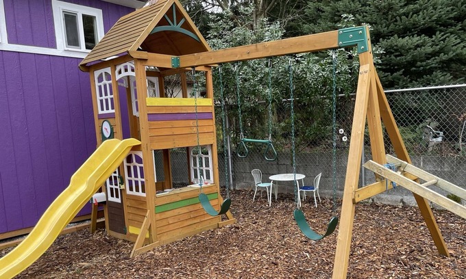 There is a seasonal garden out front that could be a source of discovery and exploration for your little tasters, with herbs and veggies for the nibbling. In the fenced back yard, enjoy two swings, a trapeze swing, slide, and play house for the little ones, plus an adult-sized AND a child-sized picnic tables with optional umbrellas for fun afternoon hangouts. We are 4 blocks from a neighborhood park with seasonal water features, walking trails, playground, and dog park.