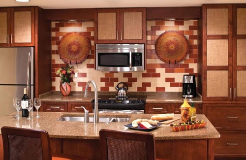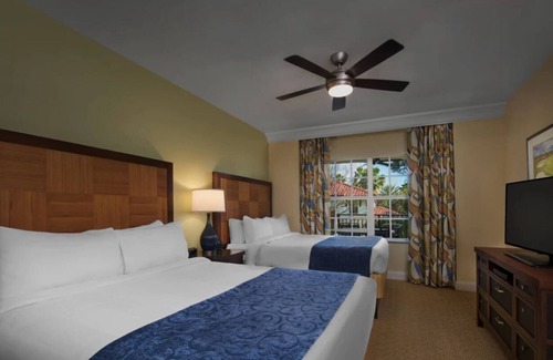 Beautiful vacation villas. 7.5 miles from airport, free Wi-Fi, free parking, and no resort fees. Restaurant on site, fitness center, on site golf, outdoor pool, hot tub, recreation area and activities. Sleeps 8! King bed in master BR w/ walk in shower. 2 queen beds in 2nd bedroom. Sleeper sofa in living room.