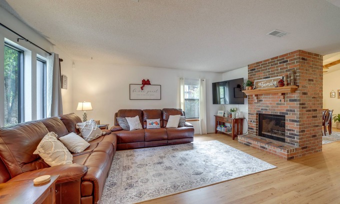 In need of a family getaway? Look no further than this charming 4-bedroom, 2-bathroom home in Broken Arrow. The vacation rental is complete with a full kitchen and a fenced yard ideal to kick back and relax in. Visit Tulsa for more activities that everyone can enjoy! Come back home and curl up by the fireplace for a movie night on the Smart TV.