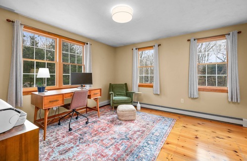On the first floor is also an office where you can connect remotely. There is a desk, a 20-inch monitor with HDMI hookup, and a WiFi enabled printer/scanner.