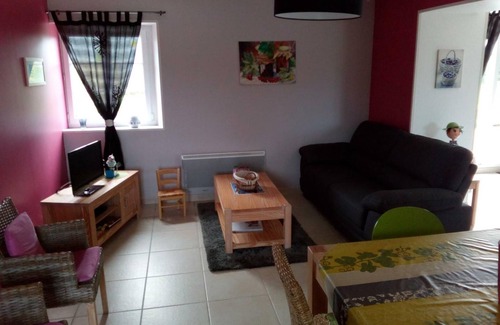 House adjoining another rental, the G816 (separated by a play area shared by both gîtes). Living room. Kitchenette. Laundry area with toilet. Internet. TV. DVD player - Washing machine. Dishwasher. Upstairs, bedroom 1 (1 double bed 140x190 and a baby bed), bedroom 2 (1 double bed 140x190 and two bunk beds 90x190), toilet, shower room. Baby equipment available. All charges included. Beds made upon arrival and towels provided. Cleaning service included. Private enclosed south-facing grounds at the rear. Shared enclosed courtyard at the front. Picnic table. Deckchairs. Barbecue. Swing set. Shelter. Ping-pong table and trampoline for shared use. Within this imposing farm building made of local stone, two comfortable gîtes await you. Each has a large outdoor area with games for the whole family to relax. This farmhouse is ideally located between Ste Mère Eglise and the beach (Utah Beach is 7 km away).