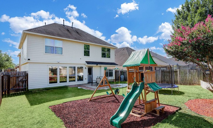 -Backyard: playground, trampoline, BBQ grill, outdoor dining area