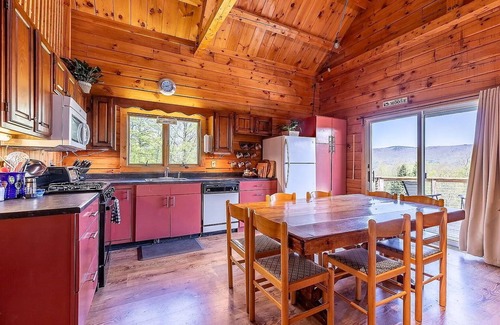 Make Highland View Lodge in Weston your family or group's home for the winter season. This spacious 4-bedroom, 3-bathroom log cabin sits on 3 quiet hillside acres and boasts stunning mountain views. Savor your morning coffee with amazing sunrise views over the mountains and relax after a day in the snow by the huge wood burning fireplace.