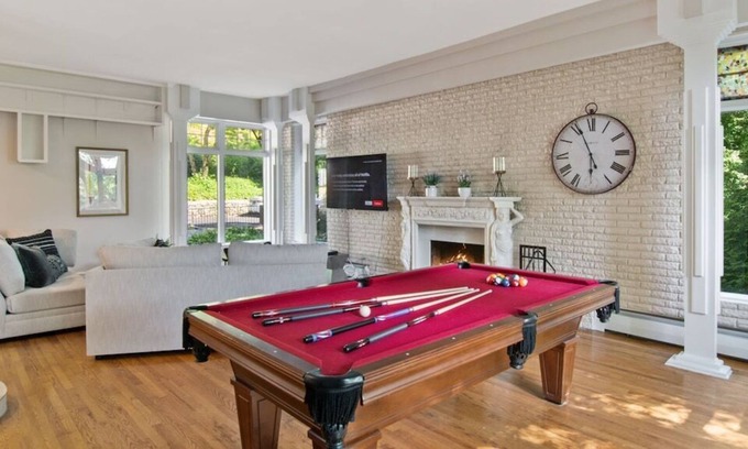 Located just minutes from the quaint town of Hudson Valley, Westchester Castle is a sprawling estate that will leave you feeling like royalty. This beautiful property is perfect for spring break family getaways or romantic retreats—there's plenty of room for everyone! You'll have your own private pool, as well as access to other amenities like an in-house bar and lounge area.