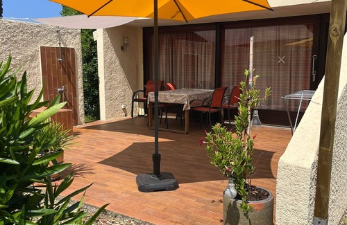 The cottage is located 60 km south of Bastia and 40 km south of Bastia airport, just a few meters from a beautiful long and family-friendly sandy beach in the car-free resort "A Chiosura". The beach, which is divided into a textile beach to the north and a nudist beach to the south, is just a few minutes' walk away.