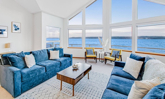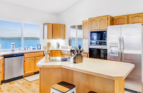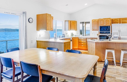 Bright, open, and very inviting, this deluxe, two-story, waterfront home is ideal for your next family getaway to the shores of Puget Sound. Boasting exciting features inside and out, this home includes a well-equipped, full kitchen, a dining table for six, a sunny living area with high ceilings and a gas fireplace, and a lower-level living area with a foosball table and additional seating options. Outside, the fun really begins with spectacular views, a private firepit, a swing set for the kids, and access to the canal for watersports, swimming, and fishing.