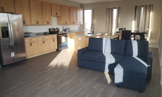The home is beautifully decorated, with large granite countertop kitchen, 2 doors refrigerator, dishwasher, dining table with chairs, sleeper sofa, washer and dryer on the unit