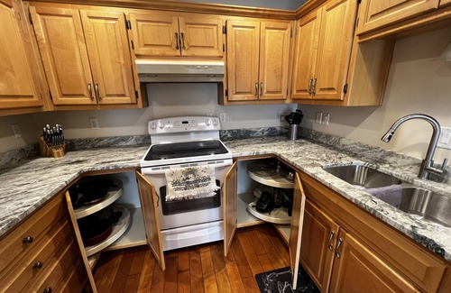 The basement has the fourth bedroom with a queen bed in it. The common area is set up for family fun with plenty of seating room for everyone. If cold start a fire in the Niagara Escarpment stone fireplace. Or for a more competitive time we have family arcade games. Alternatively turn off the lights and pop some popcorn while you watch a movie on the ROKU TV.