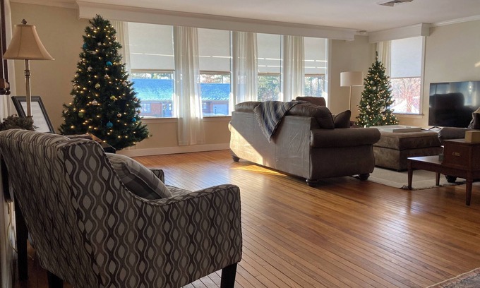 Welcome to your home away from home - a custom-designed, mid-century house on a peaceful, centrally located street, within walking distance of the College of Wooster. The entire home is available to renters, and is complete one-story living, with a large fully equipped, eat-in kitchen, combined living/dining area with a dining table, smart tv with Roku, as well as board games and books. Down the hall are three spacious bedrooms and more storage. There are a total of three full baths, a laundry room available for guest use, and plenty of closet space and built-ins for your stay.