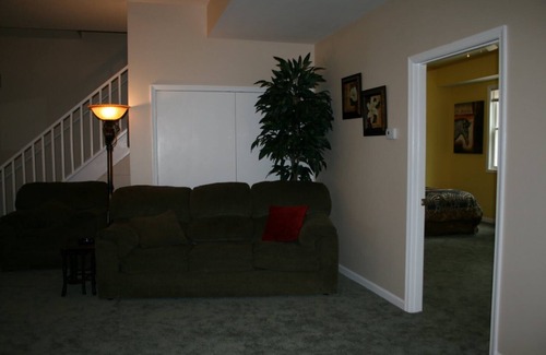 Comfortable Accommodations: Plenty of couch space and floor area are available for additional sleeping arrangements, including air mattresses. Each room is equipped with flat-screen TVs, internet access, and cable.