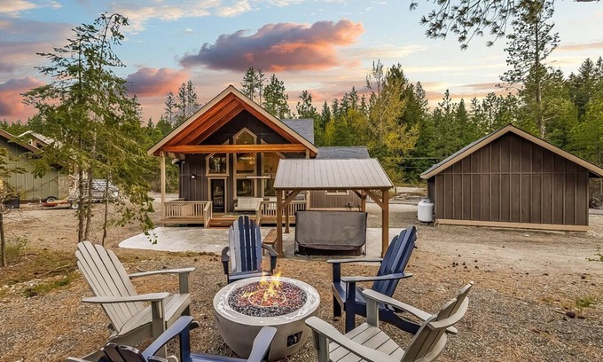 Unwind in luxury at The Norwester Stay! Immerse yourself in modern comforts, including a jacuzzi and fire pit, perfect for relaxation after a day of golfing at Suncadia Resort. This newly constructed home boasts a spacious great room, wood-stained ceilings, and panoramic views of the evergreens through large windows.