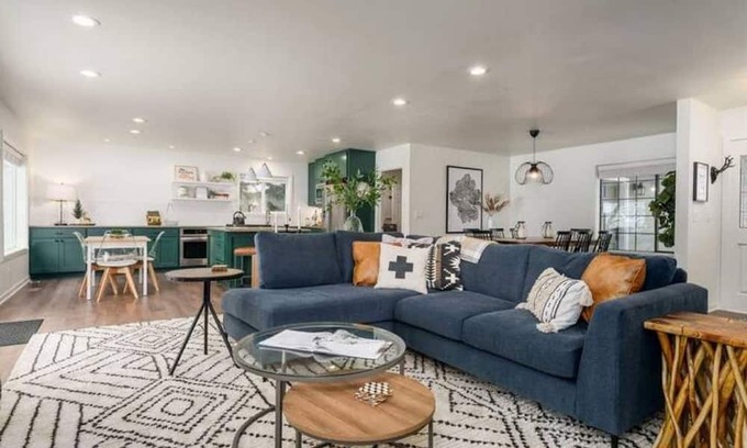 One level living is perfect for all generations from young to "mature"! The primary bedroom is large with a slider that accesses the deck and private en suite bathroom. Bedroom arrangements allow for 9 people in traditional beds (1 king, 2 queens, 1 bunk bed with full below and twin on top) however we will consider 10 people if you choose to use the pack n' play or inflatable queen mattress provided. Due to Clackamas County STR restrictions a 10 person limit will be strictly enforced and violations could result in penalties. Parties/events are not allowed.