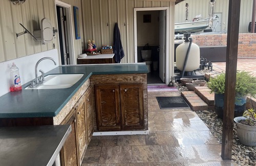 A wonderful home with all the amenities. Close to beach great fishing and a optional boat great private pool and hot tub with outdoor kitchen and cooking, grill, smoker, TV, fish cleaning space with electric, water and wash down. Pool bath with shower. You may just stay here and not go anywhere.