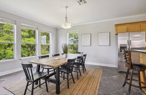 The fully equipped gourmet kitchen is a culinary enthusiast's dream, complete with state-of-the-art appliances, ample counter space, and all the necessary tools to whip up delicious meals. Enjoy your culinary creations in the spacious dining area, or savor them alfresco on the expansive outdoor deck, where you can take in breathtaking views of the surrounding natural beauty.